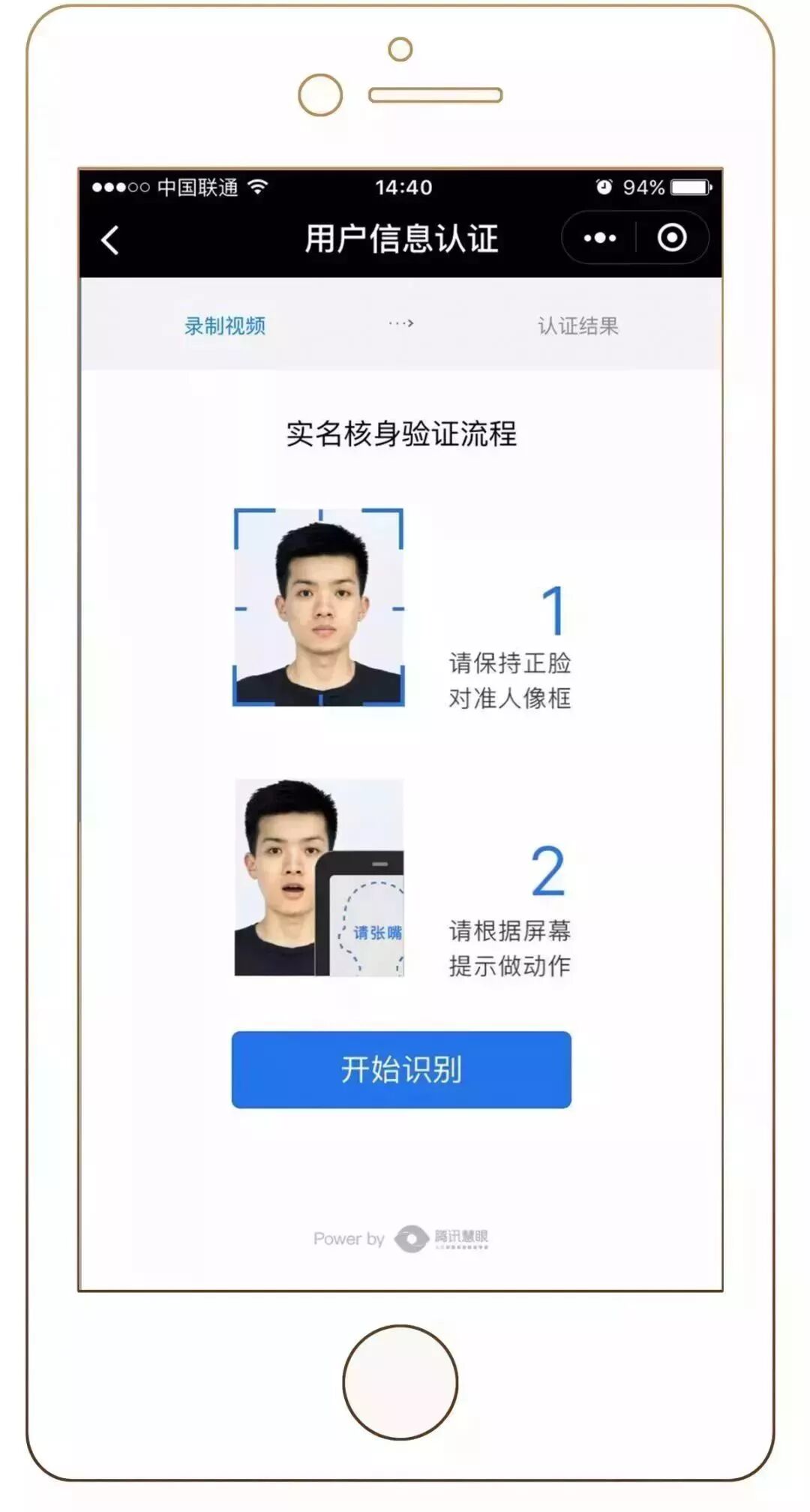 允许打开“人像比对”小程序,启动用户身份认证,点击【快速验证】,请保持正脸对准人像框,根据屏幕提示做动作