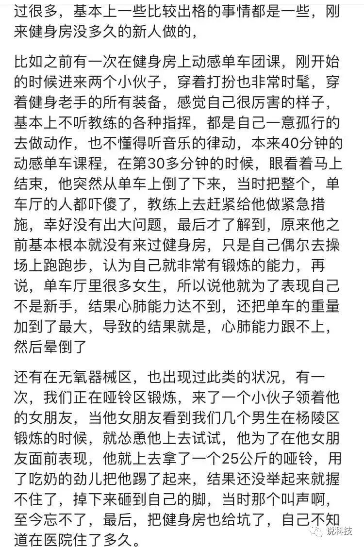 网友:会有很多很多的事情是很难理解的,这在他们自己看来可能是很好的,但是从专业的角度来看,会有很多的风险因素。如舞蹈在跑步机上跑步,看到的是几乎,跑步就像你说的,如果你想跳舞,直接跳下来,wanーー不注意伤害自己吗?再比如,在健身房总能看到裸露手臂的人,身材不怎么样,天天秀,你说如果你的身材好,秀让人看羡慕,身材不好就出来秀,让人看是不是热眼?那个经常在健身房里发出两声吼叫的人是想要表现出狮子的吼叫吗?