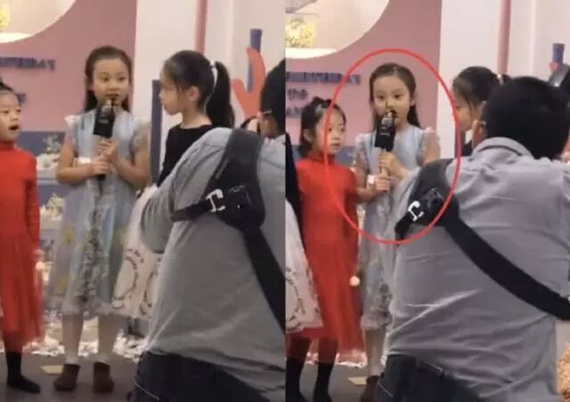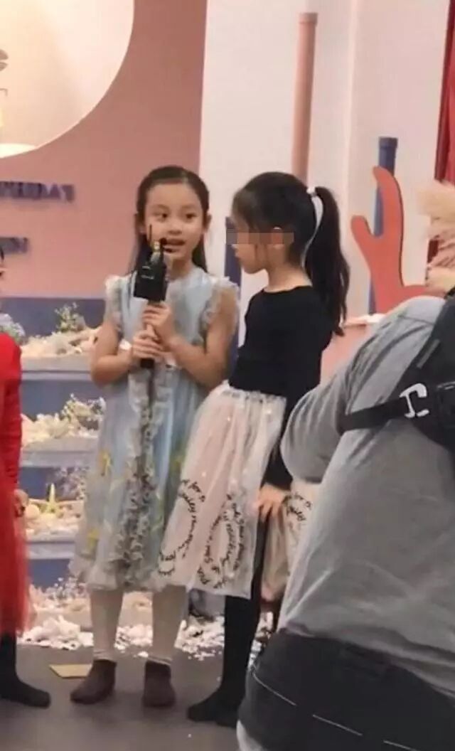 当天有网友曝光了甜馨与同学一起唱歌的视频,视频中的甜馨穿着蓝色小礼裙可爱又淑女,还邀请了不少同学,一同开心唱歌,场面很是热闹。