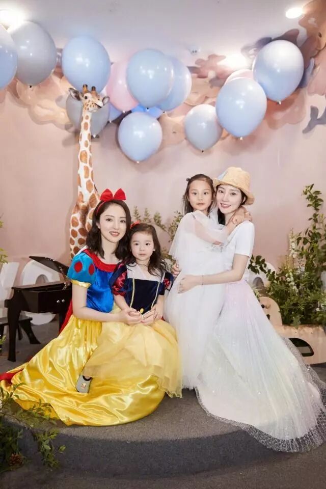 而今年董璇女儿小酒窝三岁生日时,李小璐也带着甜馨一起为闺蜜女儿庆生。当时两对母女都穿着亲子装搭配拍了合照。