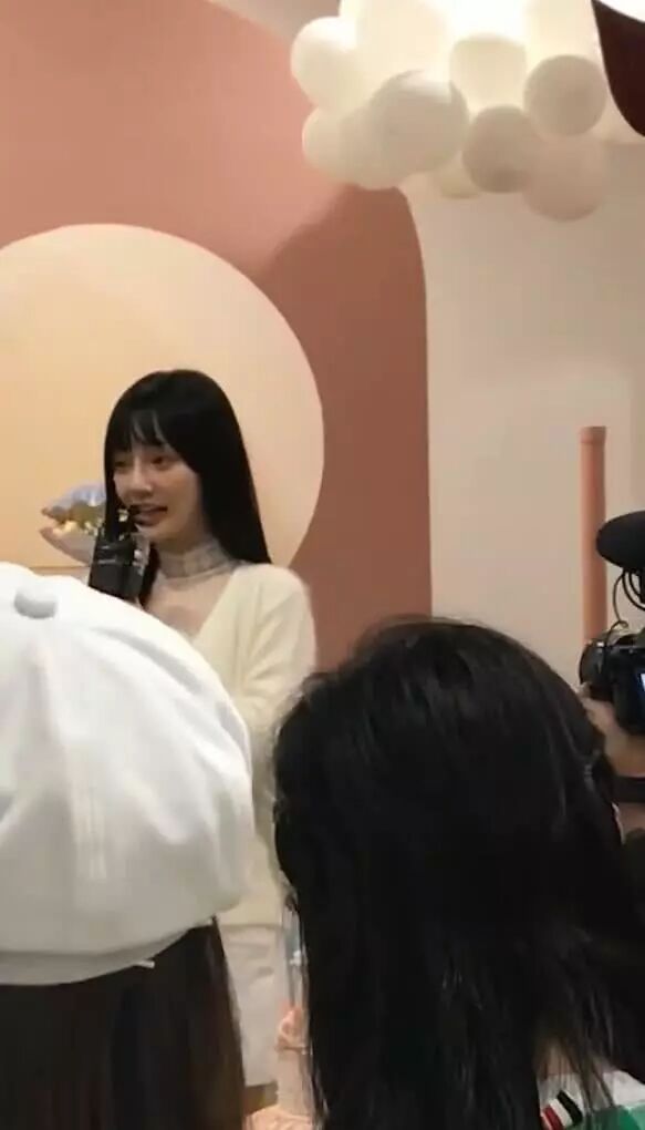 李小璐身穿一袭白色连衣裙上台致辞,一头黑长直,齐刘海发型,优雅又不失女人味。