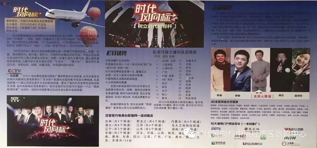 《时代风向标》是CCTV老故事频道推出的一档聊天式剖析创业、创新、创富,展现新时代、新气象、新作为,引领时代发展的访谈节目。节目以企业家代表在时代风口建立的事业创业、创新、创富之道为主要内容,通过道具辅助现场讲述,以聊天的方式实现经济学“生活化”、“媒介化”,展现时代典范风采,体验创业、创新、创富过程,共享国际国内资讯。