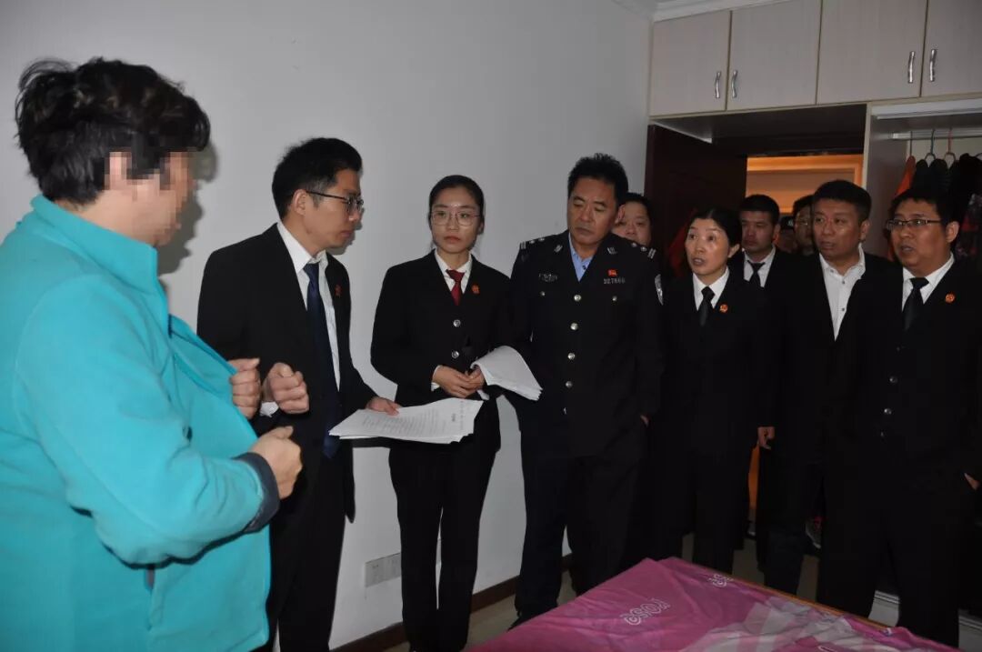 凌晨五点多,干警们来到某安置小区内,路灯昏暗,大家靠着手机电筒光引路。在干警来到某回迁安置小区一被执行人家中时,明明听到有人讲话的声音,可任凭干警怎么敲门,就是没人开门。随后,屋里的人被敲烦了,向门外大喊:“你们这是扰民,我们已经报警了,你们赶紧离开!”