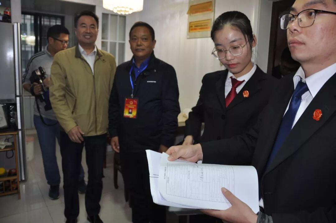 ▲在政协委员、公证人员、辖区民警见证下市法院执行干警依法对被执行人家进行搜查