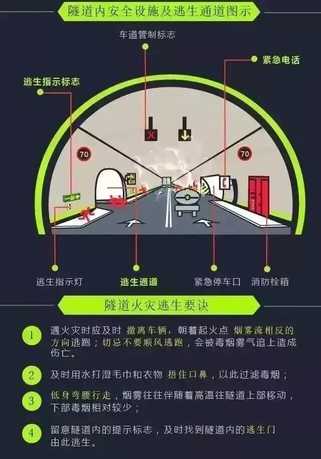 在火灾事故中,一些私家车驾驶人选择调转车头,逆向驶出隧道。消防提示,这种自救方式非常不可取,逆向驶出隧道很可能造成秩序混乱,引发逃生事故。