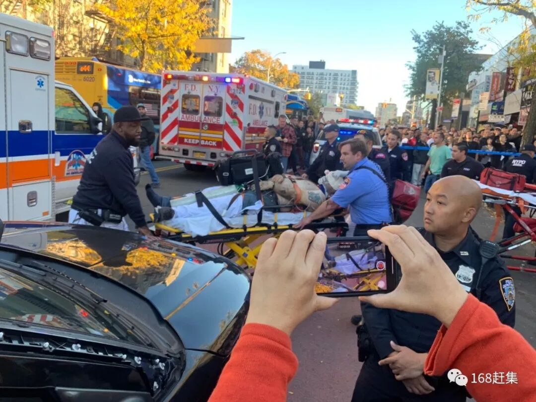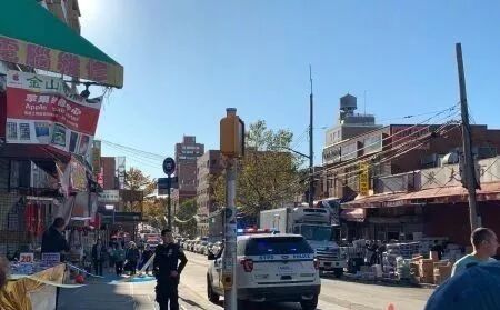 由于跳楼事故发生在法拉盛市中心人流量最密集的地方,仅数分钟就吸引大量华裔民众围观、拍照和议论。
