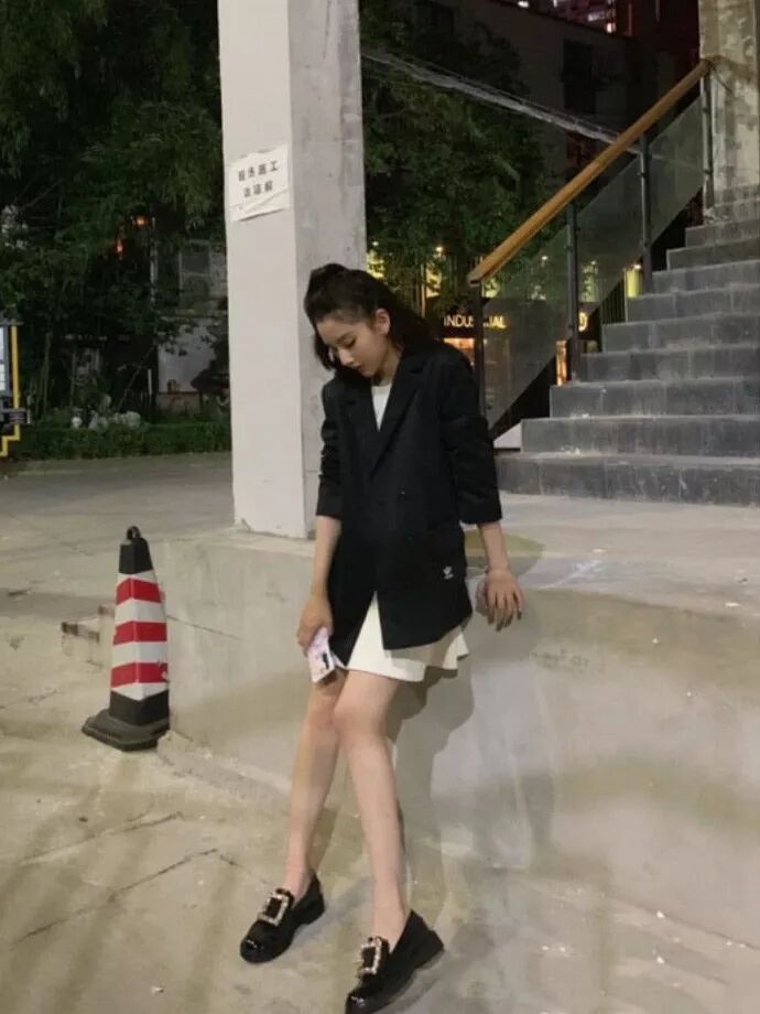 前几天,欧阳娜娜出席活动穿的这身西装,搭配Roger vivier的厚底乐福鞋,A爆了?。