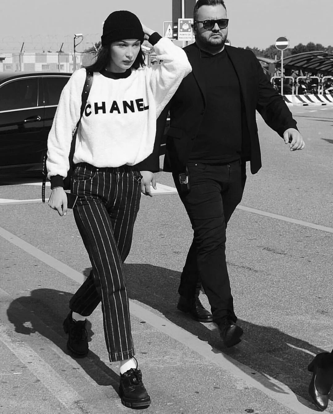 Bella这样一身黑,优雅复古还带着活泼的运动风。