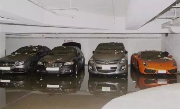 另外,在2016年的7月中旬,也有网友拍到在河南新乡的某一地下停车场有大量豪车超跑被泡水,据说400余辆汽车被浸泡地下车库超过100小时。真是车主看着心疼,保险公司哭晕在厕所啊。