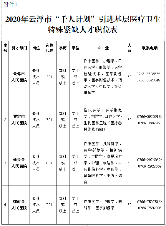 云浮引进基层医疗卫生特殊紧缺人才(200人)