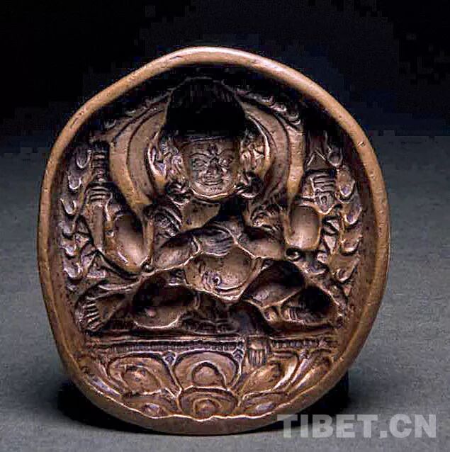 擦擦与擦擦模具在发展到12世纪晚期 —14世纪早期时出现了细微的变化,在擦擦层面上充分体现为在制作的擦擦表面上多出一圈浅浅的轮廓,模具层面上则在平板模具的边缘隆起了浅浅的边框。如图6西藏阿里地区12世纪六臂观音擦擦就开始出现这个细微的变化,西夏水滴形擦擦到13世纪纳塘寺出土的也都体现了擦擦模具对擦擦起到的美化作用,这也说明模具美化的开端从这个时期开始,也就从按印开始向脱模转变。