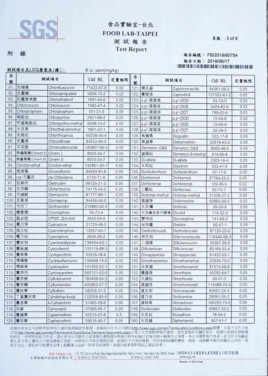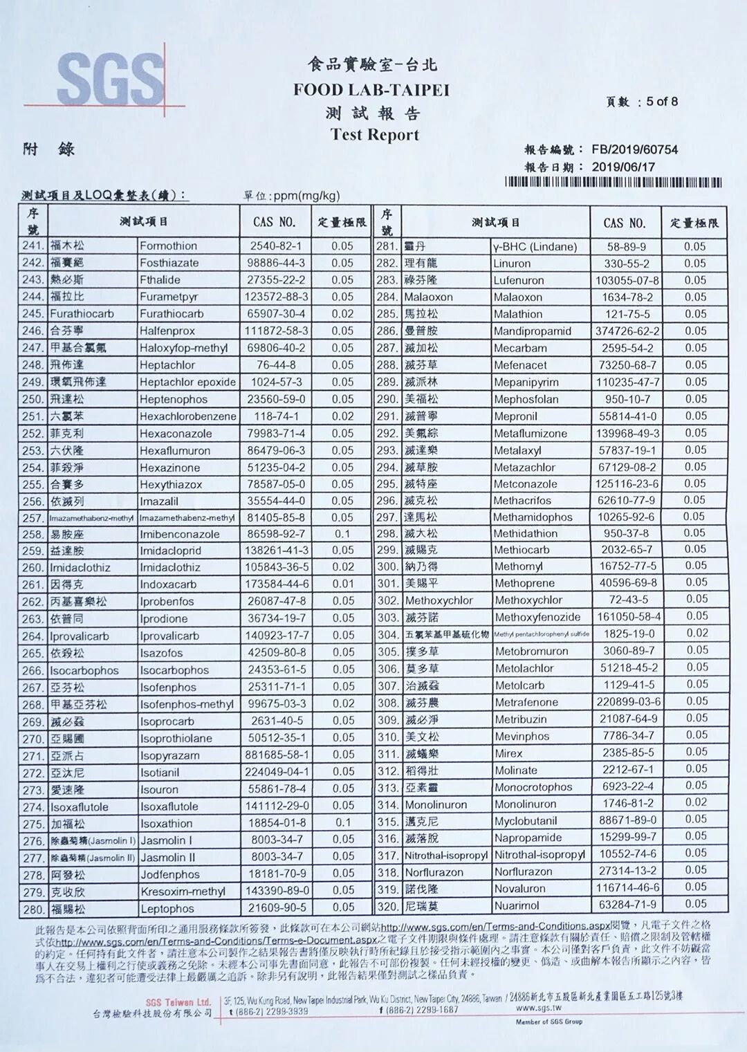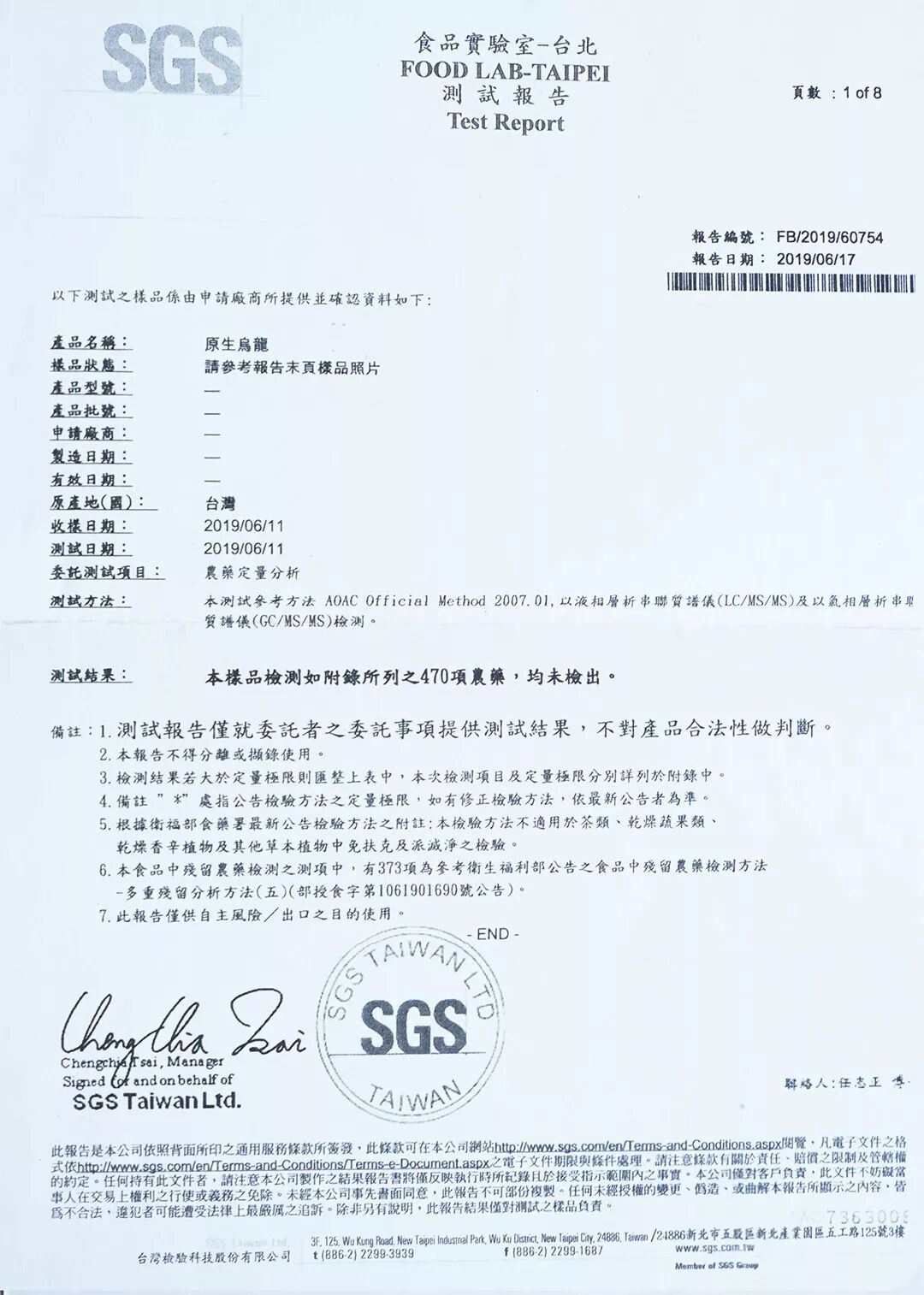 这款茶的产地位于阿里山石棹茶区,采制于2019年5月15日,是第一批采摘的春茶(头春头采),茶树品种是青心乌龙,茶园位于原始森林旁,海拔1550米,云雾缭绕,完全没有任何污染,470项农残检测全部未检出。