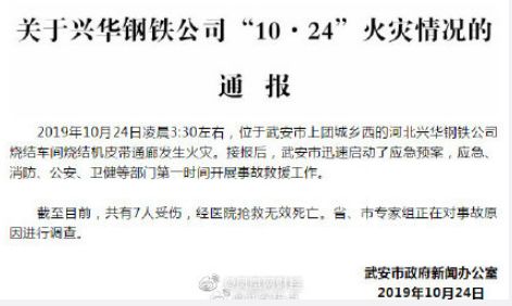 河北一钢铁厂发生火灾,目前造成7人死亡