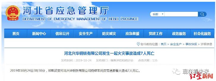 河北一钢铁厂发生火灾,目前造成7人死亡