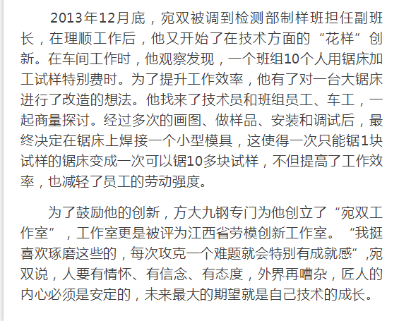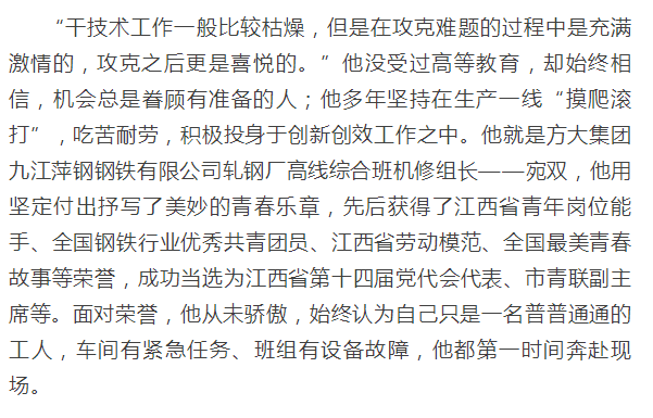 【新时代赣鄱先锋】用“工匠精神”抒写美妙青春——记方大集团九江萍钢钢铁有限公司机修组长宛双