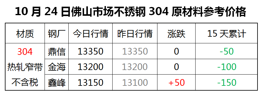 10月24日佛山市场不锈钢管材304原材料参考价格
