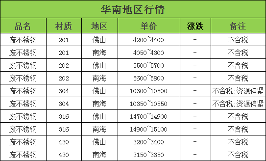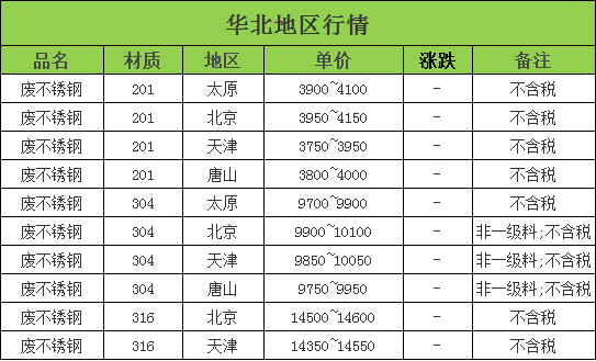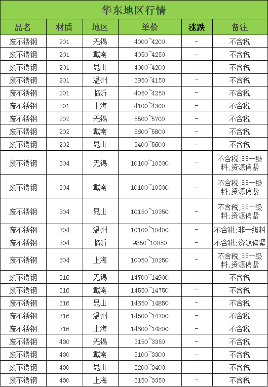 【废不锈钢】10月24日全国废不锈钢价格汇总