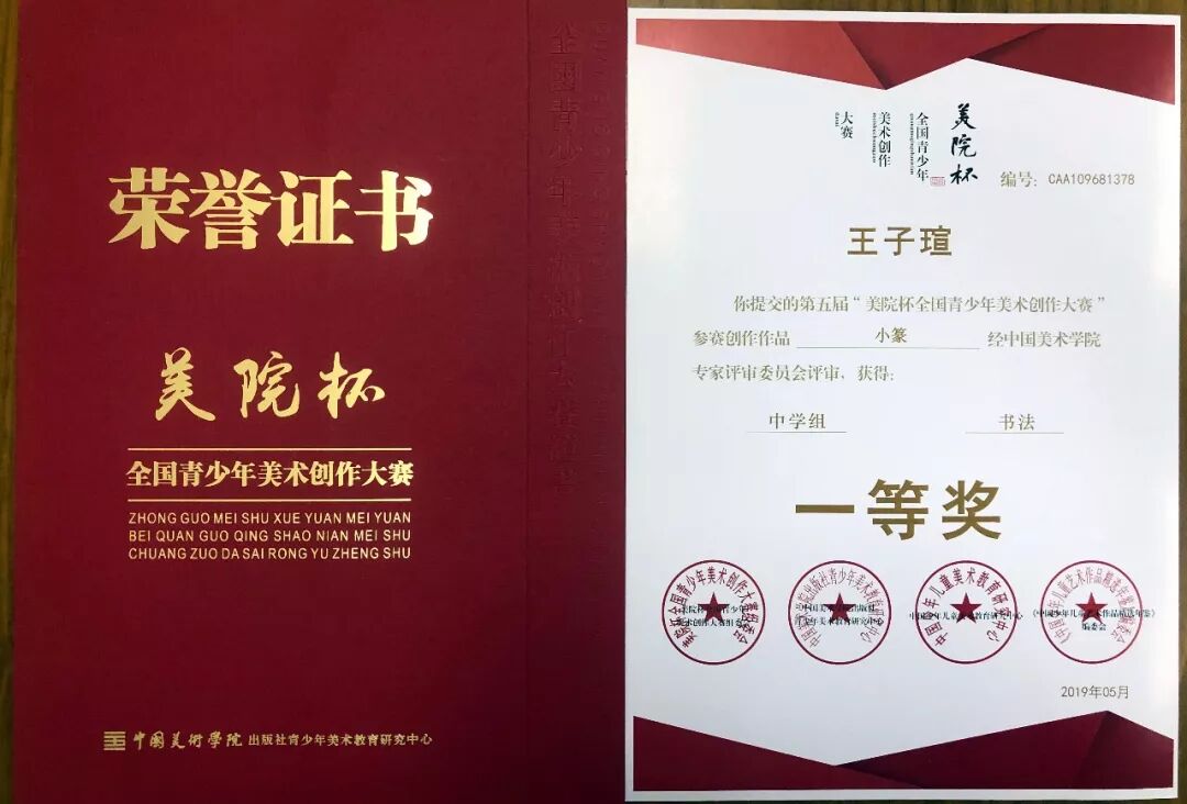 今年上半年,Uart艺术中心的学生们参加第五届“美院杯”全国青少年美术创作大赛,凭借着高质量的书法作品获得了一等奖及二等奖的荣誉。