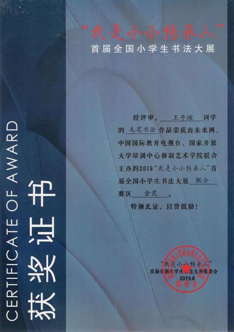 “我是小小传承人”首届全国小学生书法大赛于8月6日评选结束,Uart艺术中心参赛选手获得全国金奖1名、银奖1名、大赛潜质奖9名以及入展奖16名,中心的获奖人数领跑上海地区。