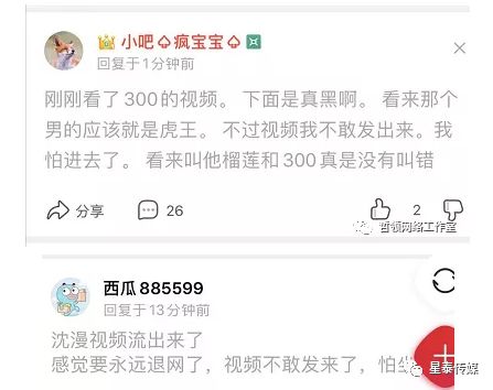 今天在贴吧有吧友拿出一张截图说沈曼退网是因为视频被爆了,