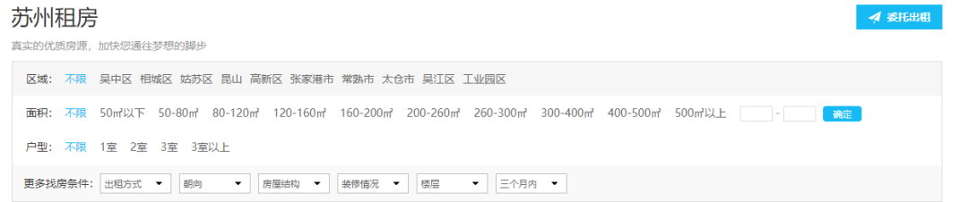 深度君在平台首页,看到了苏州各区的房源数量清晰标明,6区4市一目了然,这也太贴心了吧。