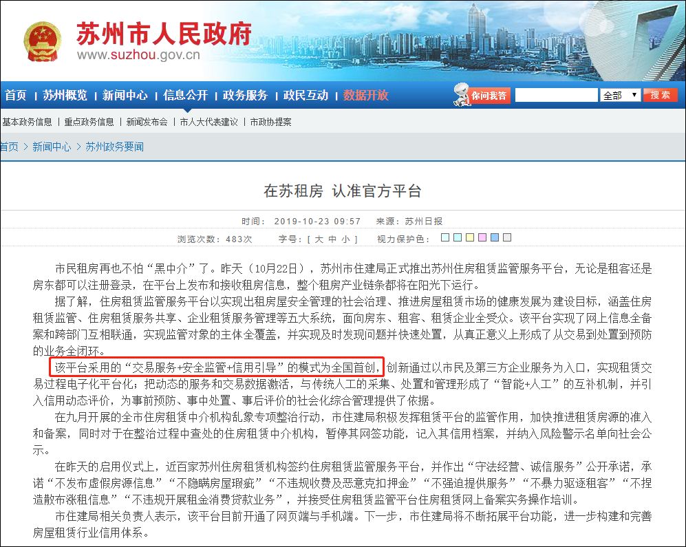 就在前天,苏州市租赁房屋信息服务与监管平台正式上线运行。指路
