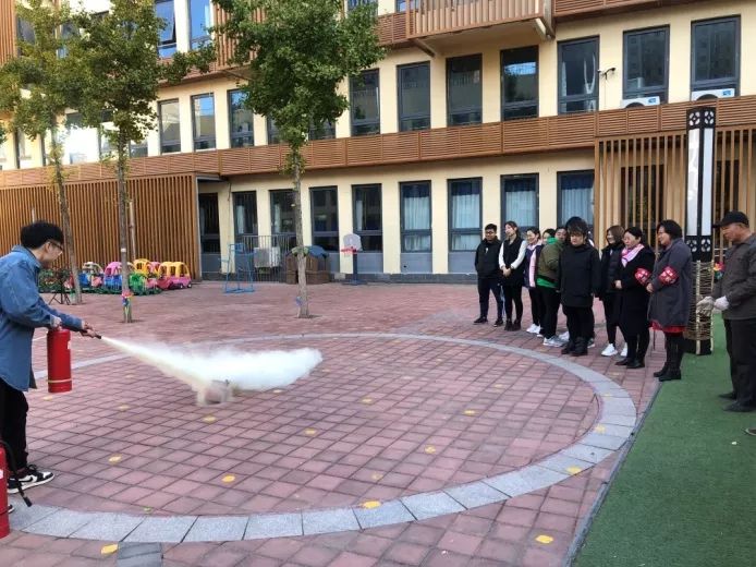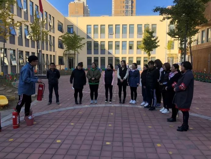演练开始前,由义务消防队成员刘鸿艺老师对教师进行灭火器使用方法的培训。刘老师针对灭火器的种类和使用要点做了详细的讲解并进行灭火过程展示,此项活动巩固了全体教师使用灭火器的能力。