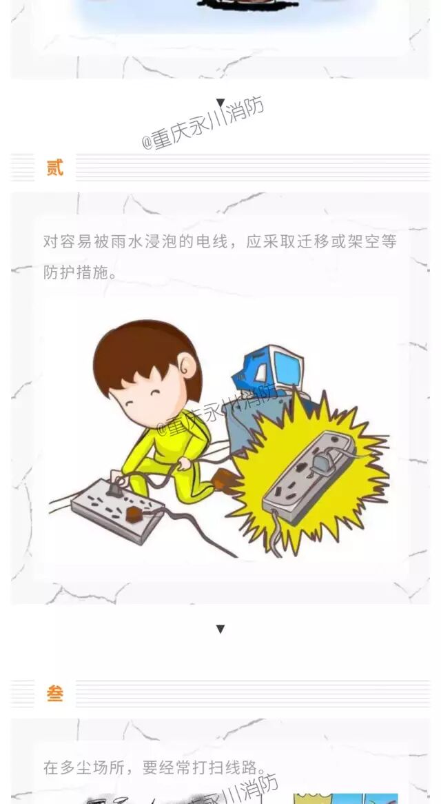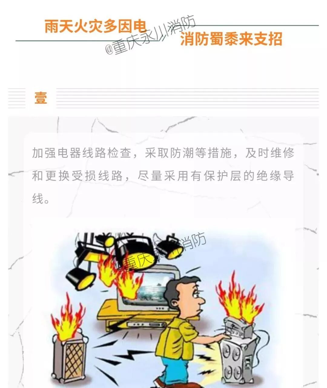 下雨天由于空气潮湿,居民家中的电器、充电设备,受内部结构老化、电器回潮等影响,在突然接通电流时很容易导致火灾!