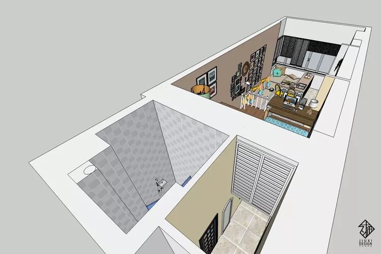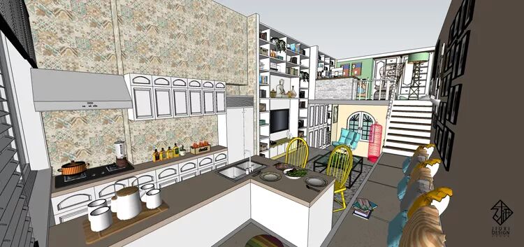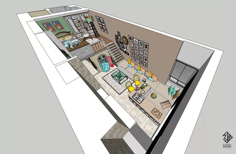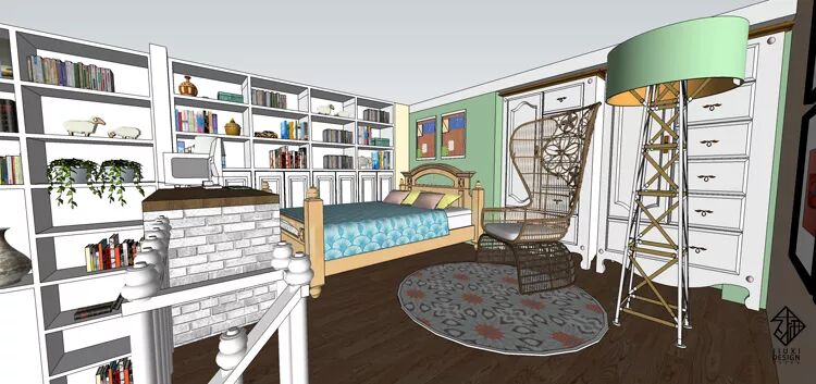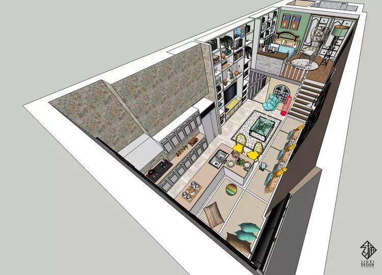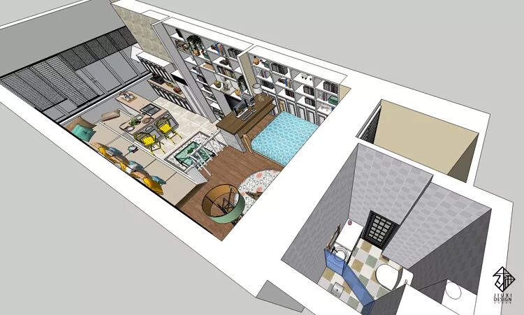 一套挑高四米二的小loft户型,使用者是一位具有事业心的单身可爱女孩跟她的母亲。希望可以将这个房子设计出非常合理的上下楼空间。