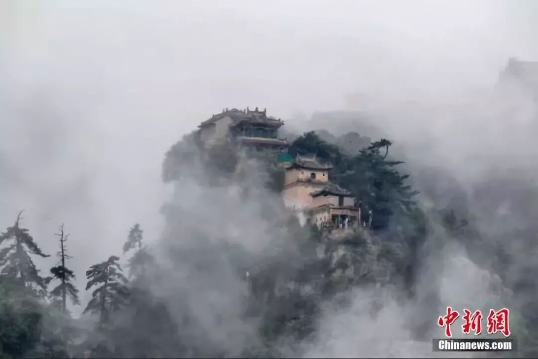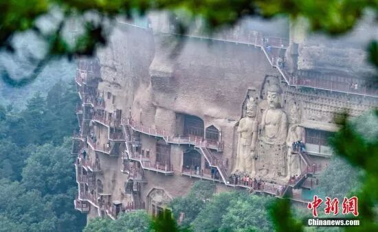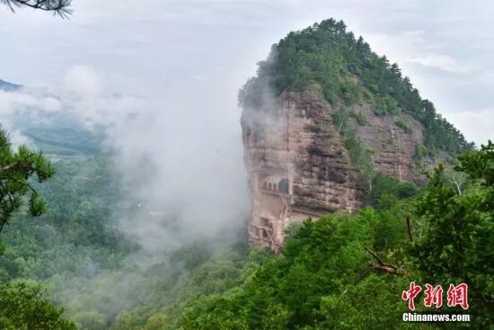 麦积山石窟雾霭缭绕 浓浓江南风韵