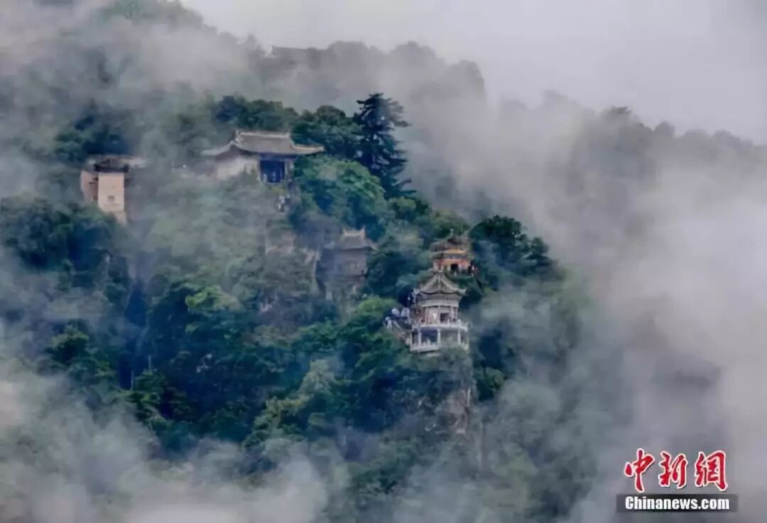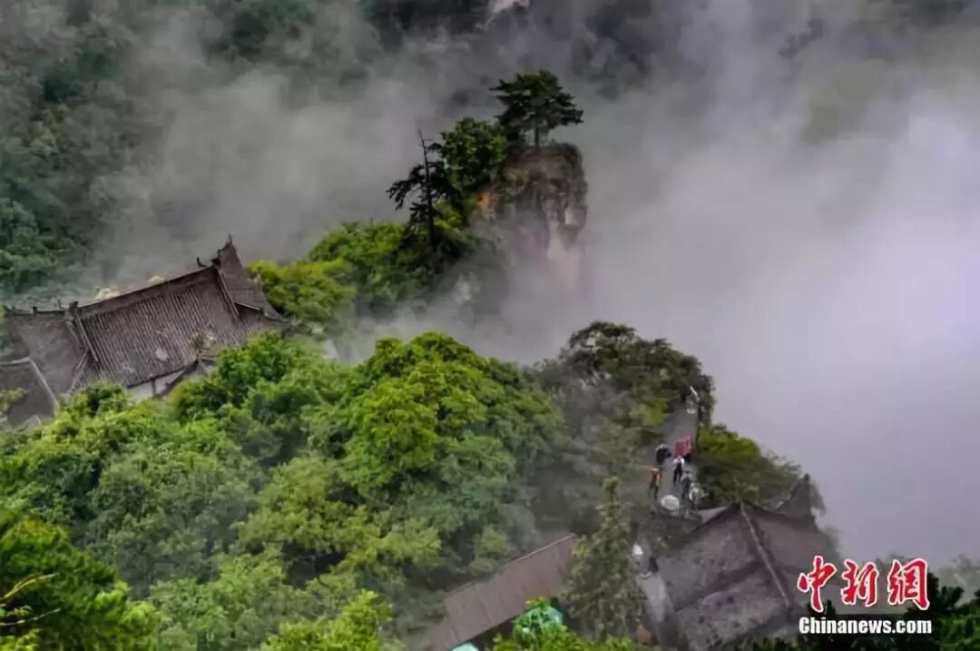 崆峒山迎秋雨 游人拾级而上赏烟雨“仙居”