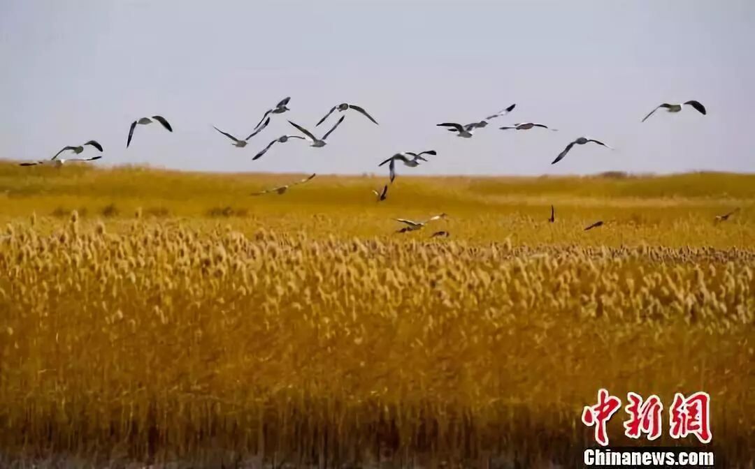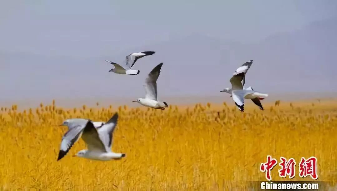 阿克塞高原湿地湖鸥鸟翔集显生机