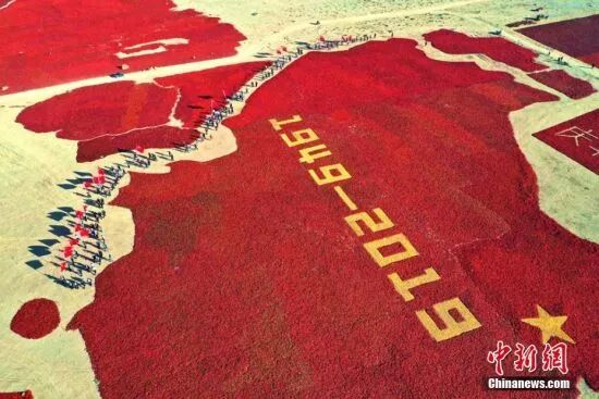 张掖戈壁辣椒拼3万平方米巨型地图庆丰收