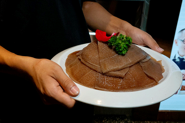 品相晶莹剔透,比鸭肠宽厚瓷实,贼有嚼劲。