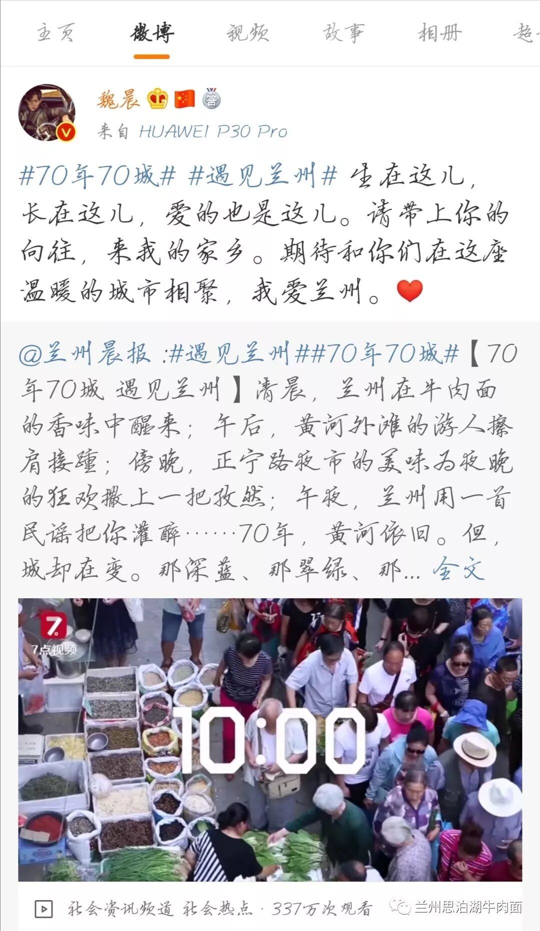 作为兰州土生土长的歌手、演员,魏晨也积极参与转发,为家乡代言,并在微博喊话,“生在这儿,长在这儿,爱的也是这儿。请带上你的向往,来我的家乡。期待和你们在这座温暖的城市相聚,我爱兰州。”