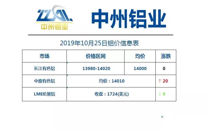 10月25日长江有色A00铝13980~14020均价14000涨跌0,