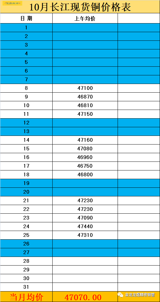 【铜价】2019年10月长江现货价格表