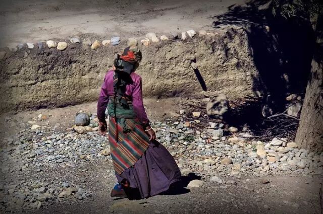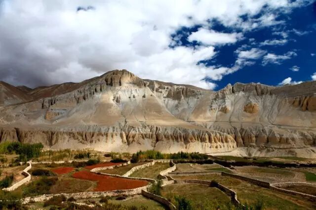 民房墙上的彩色横道是藏传佛教萨迦派的传统,这在木斯塘非常盛行。颜料取自当地的山岩上。