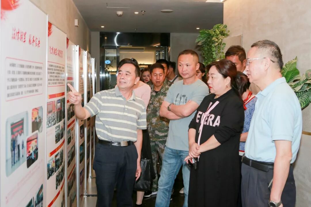 陈益国秘书长为前来调研的领导讲解市爱国拥军促进会的工作展板