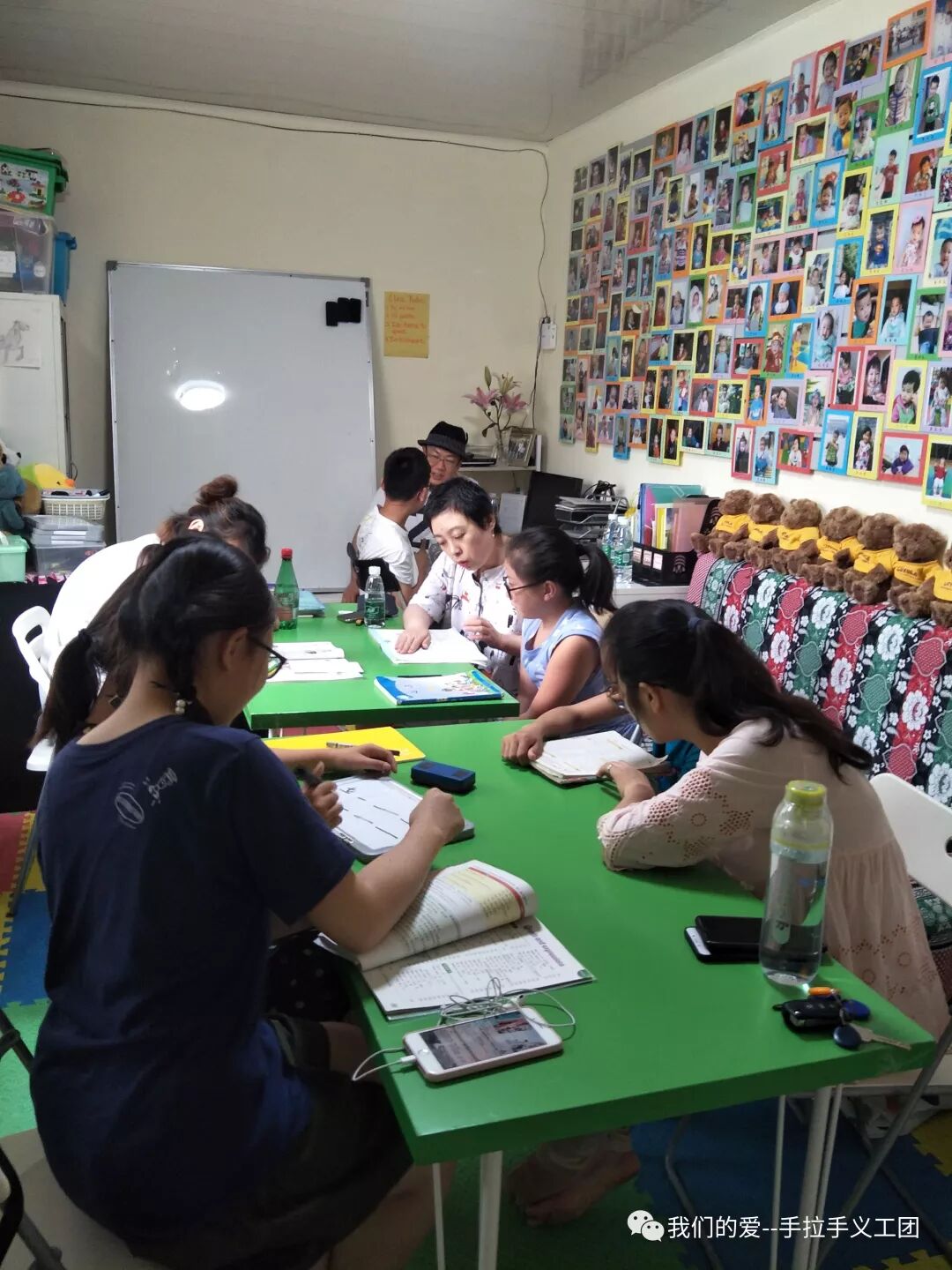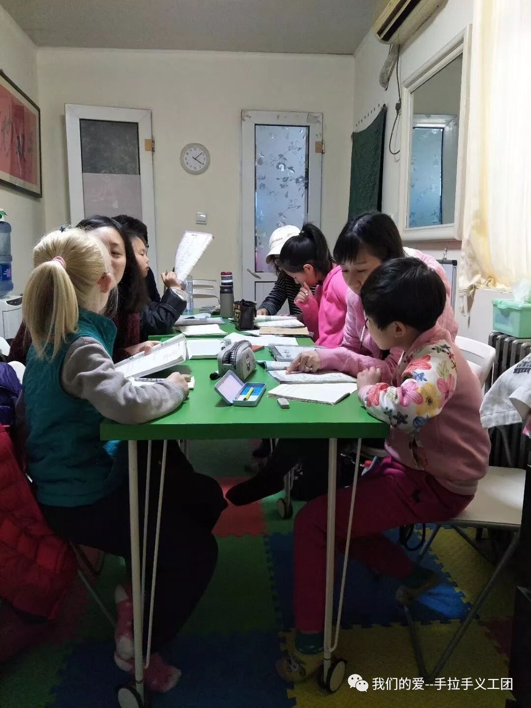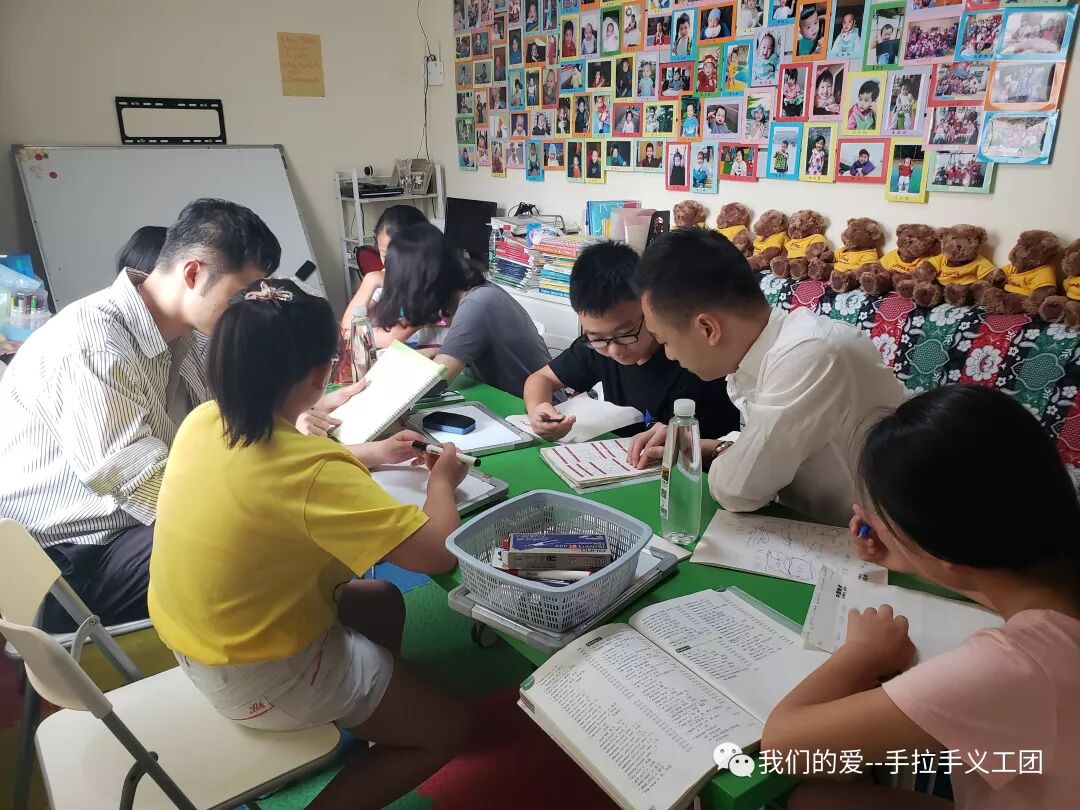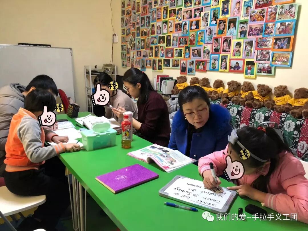 从2018年5月5日起,每周六下午手拉手义工团组织义工在马泉营村给2-5名小学和初中的孩子义务辅导英语。