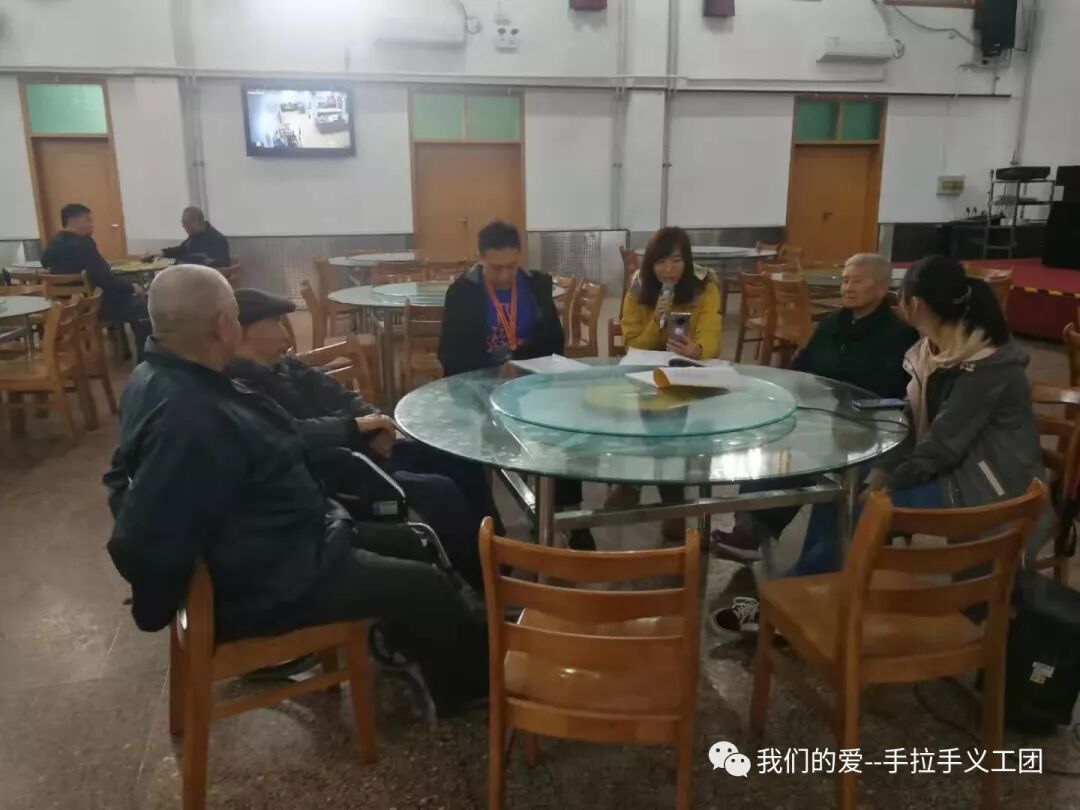 这周日上午我们的爱—手拉手义工团将继续福寿老年公寓活动。时间是从8:30-11:00。为了让新义工在初次参加活动时有更好的义工体验,新人由老义工带着融入活动,本周活动新人名额10人(注意:只要是第一次参加本活动,该义工就定义为新人,与之前是否参加过其他活动无关),参加过本活动的无名额限制。