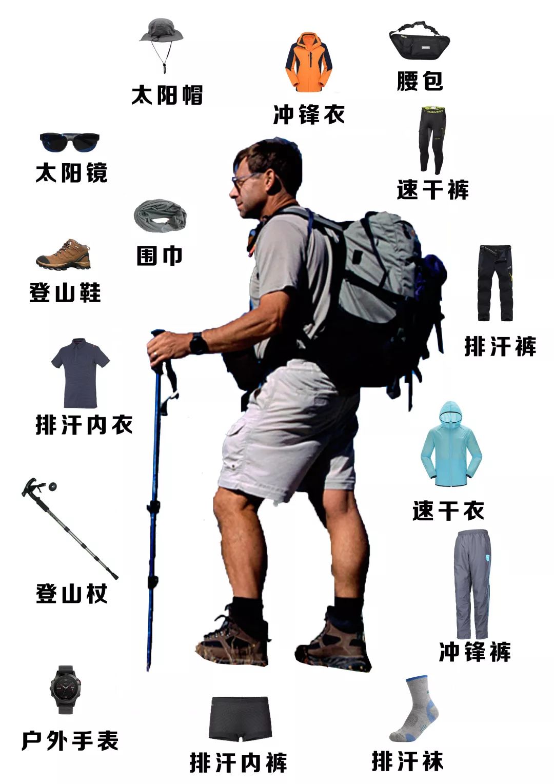 排汗保暖内衣,不建议带纯棉的内衣,出汗了散不掉,容易着凉感冒短袖、或者速干衬衫。