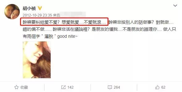 对于这样的猜测,小祯还没有正面回复过,一直回应自己现在只是一个人。确认离婚后,小祯透过社交媒体表示自己现在心情很好,称:“恢复单身当然是开心无比的事啊!”