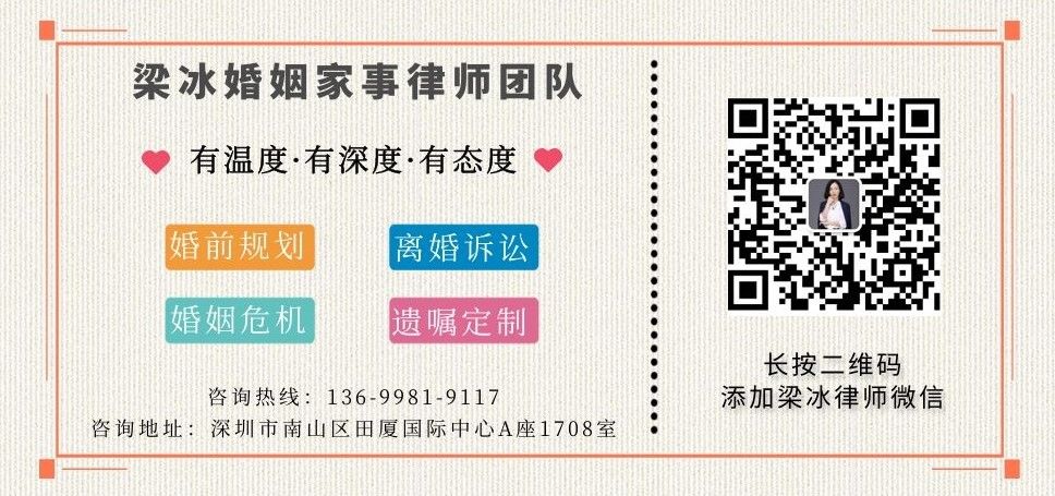 “梁冰家事律师团队”对转载、分享的内容、陈述、观点判断保持中立,不对所包含内容的真实可靠性或完善性提供任何明示或暗示的保证,仅供读者参考!