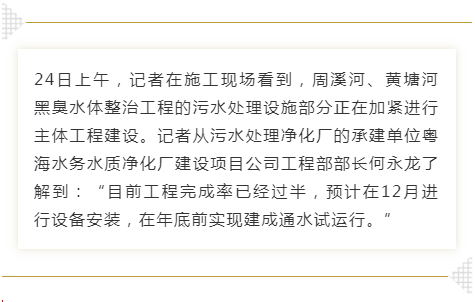 城市黑臭水体治理备受市民关注,周溪河、黄塘河黑臭水体整治工程建设进展如何?
