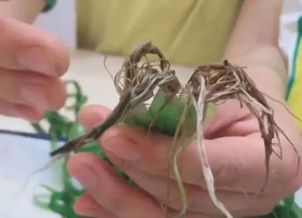 我们来看一下水草正常的池塘的水草。胡老板是江苏盱眙的河蟹养殖户,他家里的池塘家里水草长得就很好,我们抓一把水草上来能看到根系发达,白根很多。