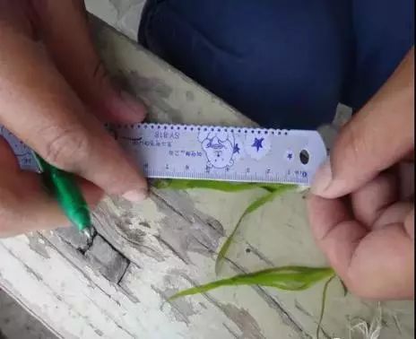 上面这个图是正常水草的叶片长度,大概在十厘米左右。下面这张图是漂浮水草的叶片长度,大概为七厘米左右。可以看到漂浮的水草的叶片有明显的萎缩迹象。