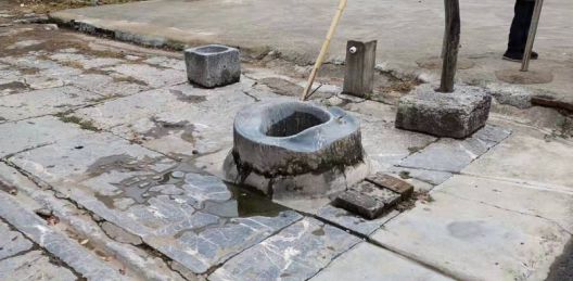 ▲库里古井 位于宁远县中和镇库里村,其村宋时就来此定居,为欧阳修后裔,开村后即有古井。古井底上圆下方,仅容一桶下井,以便卫生。井台在长期提水过程中,因脚踩而形成深深的印痕,极显古朴。井周用条石护砌,形成平台于村中。