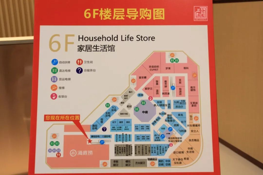根据了解,海底捞上虞店建筑面积为1020㎡,位于新大通6楼,门店一侧就是一个电梯,可直达7楼美食城。