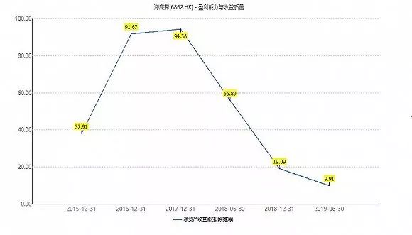 不仅如此,海底捞的运营指标也在逐渐恶化。根据今年半年报,海底捞的总资产周转率为0.81,而去年同期为1.78。营业周期也由2018年的3.43天增加到如今的4.27天。餐饮企业利润微薄,运营效率对他们的盈利至关重要。持续、大规模的扩张门店,使得海底捞净利率和营业效率都出现降低。净资产收益率(ROE)出现了大幅下滑也就不令人意外了。如今海底捞的ROE只有9.9%,几乎只有两年前的十分之一。